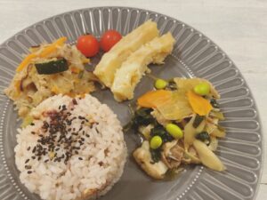 - たくさんの食材が一度にたくさん食べられるので、栄養面も考慮されてるのがいい!